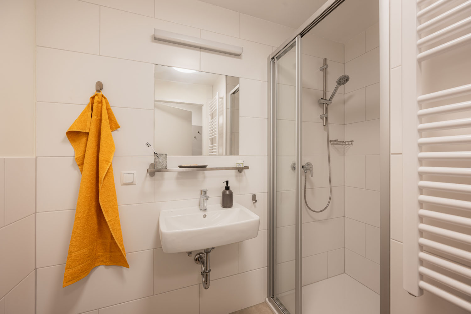 inklusive Dusche, Waschbecken und WC